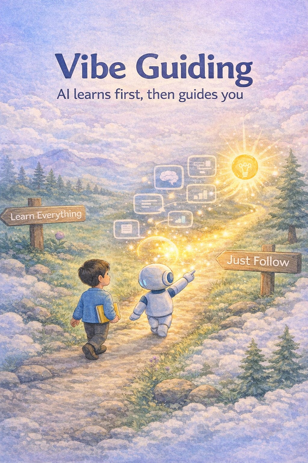 그래서 시작한 것이 Vibe Learning 실험이었고, 그 실험을 이어가면서 또 다른 아이디어가 생겼습니다. 오늘 소개할 Vibe Guiding이 바로 그것입니다.