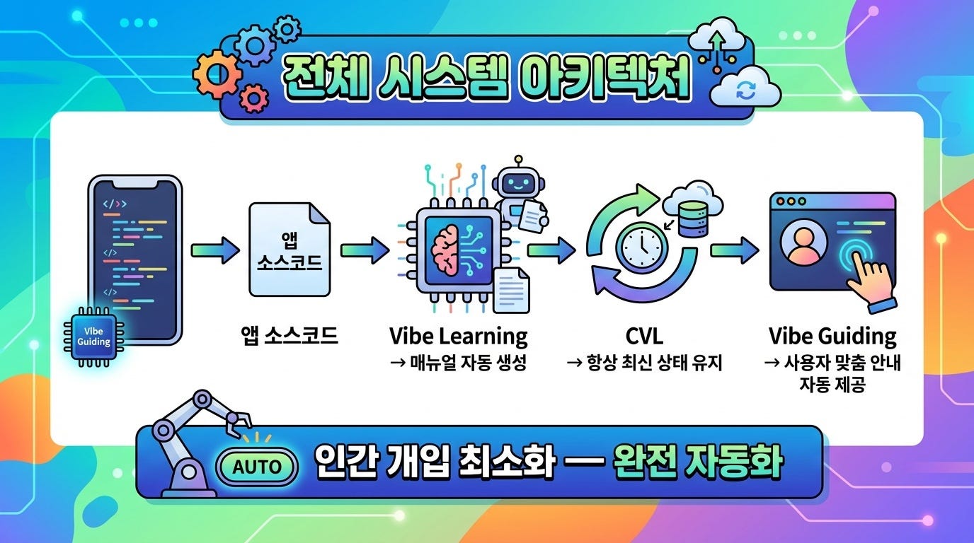 이 문제를 해결하는 것이 CVL(Continuous Vibe Learning)입니다. 소스코드가 변경되면 CVL이 이를 감지하고, 매뉴얼 업데이트가 필요한 변경인지 AI가 판단하여 자동으로 문서를 갱신합니다. Vibe Guiding은 항상 최신 정보를 바탕으로 사용자를 안내할 수 있게 됩니다.